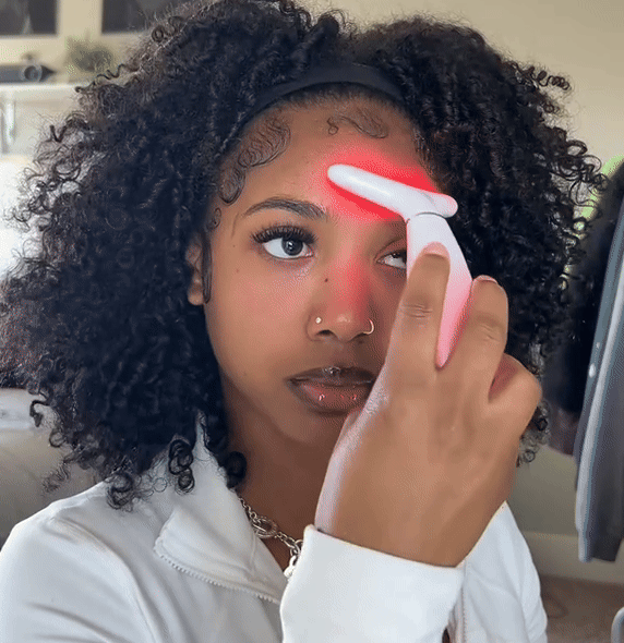 It uses LED light therapy combined with gentle vibrations to stimulate collagen production, improve circulation, and tighten the skin. This helps reduce fine lines, wrinkles, puffiness, and sagging.